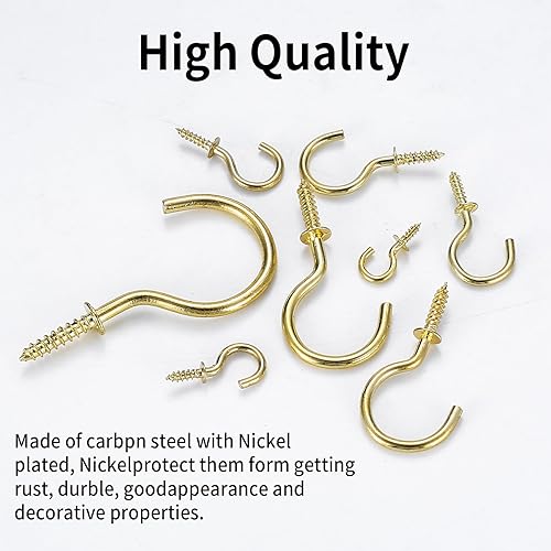 190 Pz Ganci a Vite, Ganci Avvitabili, Ganci a Tazza, Ganci per Soffitto in Metallo, Gancio a Vite per Legno, Ganci per Appendere Piante Luci da Esterno Decorazioni Artistiche - Oro
