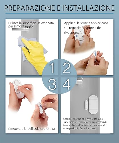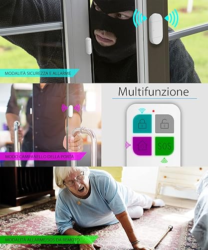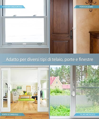 Sensore di apertura per porte e finestre con telecomando e Allarme 130db | Sensore di contatto magnetico | wireless | Porta d'ingresso, porta del garage, cancello della piscina, ecc