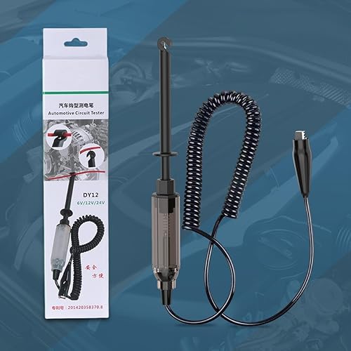 VKALTUL Tester di Tensione Automobilistica, Tester di Tensione DC 6V/12V/24V, Penna di Prova Con Sonda a Gancio e Indicatore 1 pz
