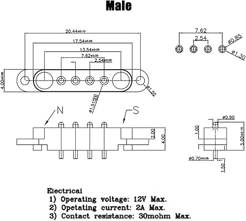2 paia Connettore magnetico Pogo Pin con foro di posizione, Connettore magnetico Pogopin 2/3/4/5/7/8P 2A Presa di alimentazione CC maschio+femmina da 2,54 mm (8P)