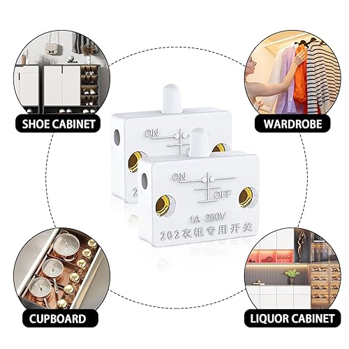 RYAN 8 Pezzi Interruttore per Armadio Porte 1A 250V Luce Interruttori di Contatto Porta lampada Dell'armadio Microswitch LED per Armadietti Switch Push Porta Interruttore(Bianco)