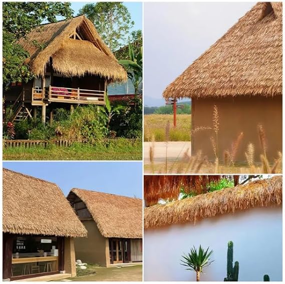 Tegole di Paglia di Palma Pannelli Decorativi in Paglia Sintetica - Resistente ai Raggi UV e Impermeabile Perfetto per Tetti e Decorazioni Esterne(Size:4m/13.1ft)