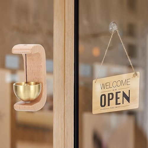Campanello Negozianti, Campanello Porta Legno con Campanelli Appesi Magnetici Metallo Adesivo per Apertura Porta Attività Commerciali Ingresso Decorazione, Marrone, Rotondo