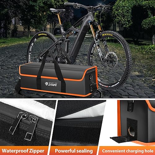 Borsa per batterie Ebike - Borsa sicura per lipo ignifuga, impermeabile, a prova di esplosione, scatola di sicurezza per batterie per lo stoccaggio, il trasporto, la ricarica (Nero, Arancione)