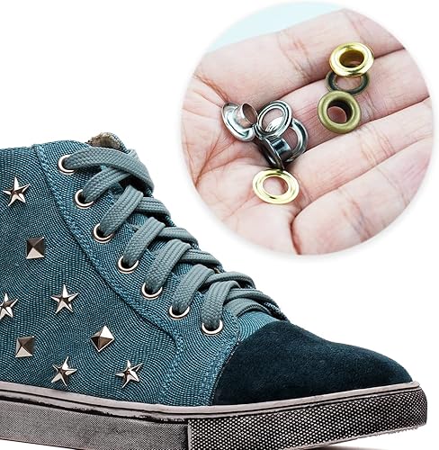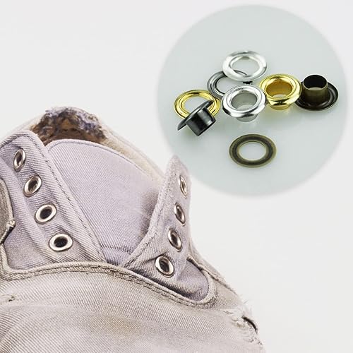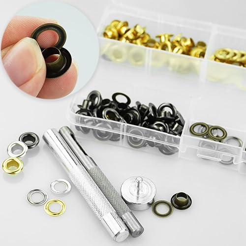 Set di 120 strumenti per occhielli da 6 mm, con punzonatrice per fori, strumento di fissaggio e base in metallo, occhielli per tessuto, pelle, vestiti, tela (argento/verde bronzo/oro/grigio)