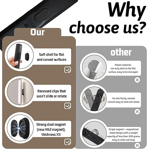 5Pack 2024 - Supporto per telecomando magnetico migliorato, colore nero, in silicone, supporto da parete per TV, aria condizionata/ventilatore