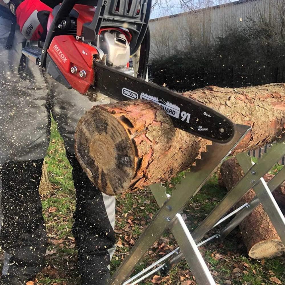 Cavalletto da sega per motosega, cavalletto da segatura pieghevole 150 kg metallo zincato giardino denti porta tronchi supporto da taglio cavalletto per sega motosega (84 x 80 x 80 cm, 4 colonne)