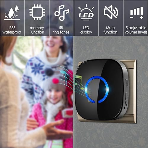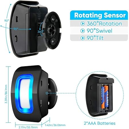 Sensore di movimento con campanello wireless, allarme passaggio, campanello per gatti, campo di rilevamento 4-5 m, 110°, 1 sensore di movimento, 1 ricevitore