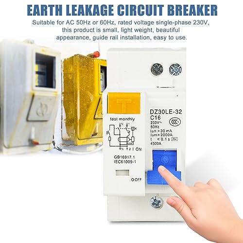 Interruttore di protezione Fi, 16 A, AC 230 V, 30 mA C16 1P+N, interruttore FI/LS, interruttore di sicurezza, montaggio su guida DIN, protezione da sovraccarico, protezione da sovraccarico, protezione