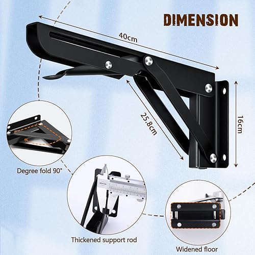 Staffa Pieghevole 400mm,2 Pezzi Staffe Pieghevoli per Tavolo a Muro,Reggimensole Pieghevoli Pesanti In Metallo,Supporto per Mensole Pieghevole,per Garage,Ufficio,Tavolo,Parete