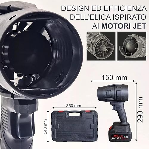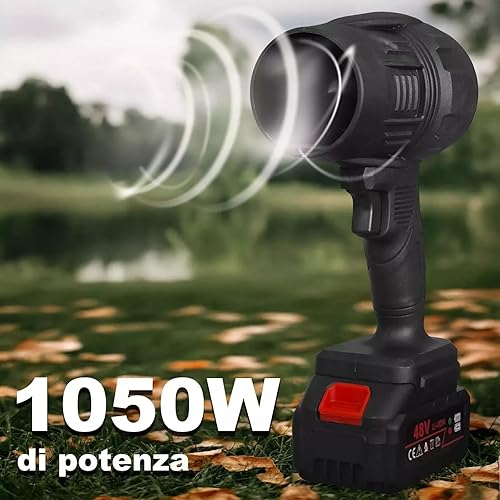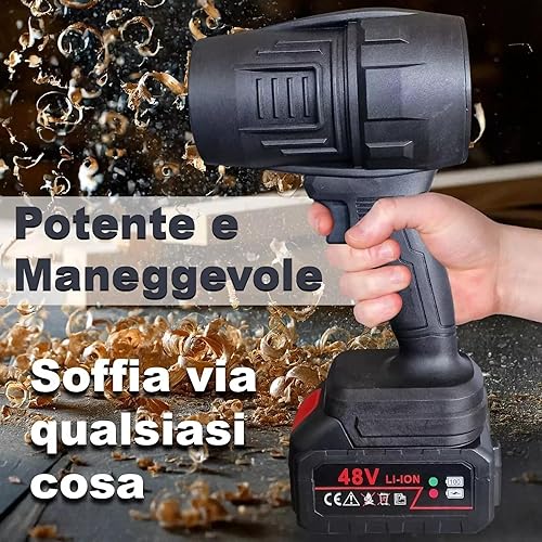 Soffiatore a Batteria, Mini Soffiatore per Foglie con Turbocompressore, Velocità dell'Aria fino a 126 km/h, Dotato di 2 Batterie da 48V, Adatto per la Cura e la Manutenzione del Giardino