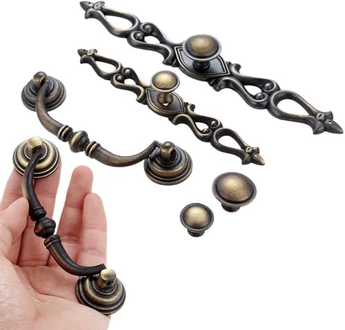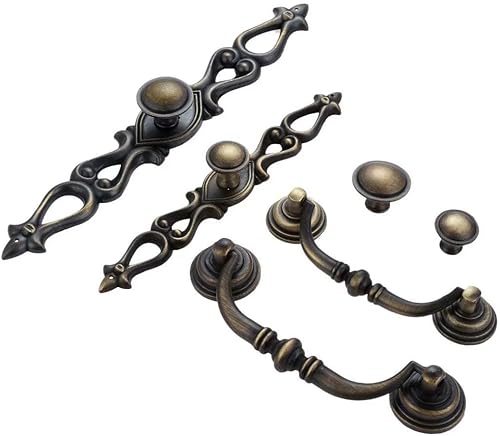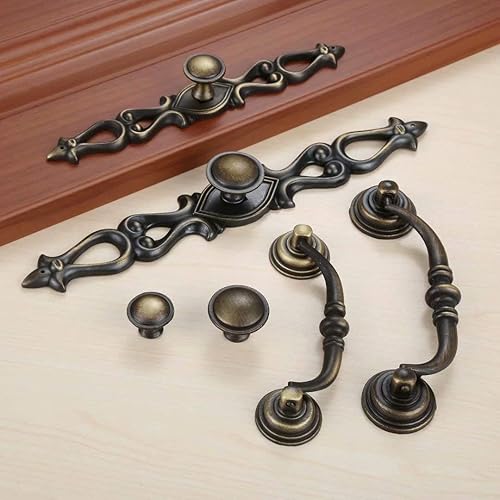 10 pezzi mobili vintage retrò armadio porta armadio cassetto tirare maniglie e manopole con viti bronzo (C-Distanza foro 90mm)