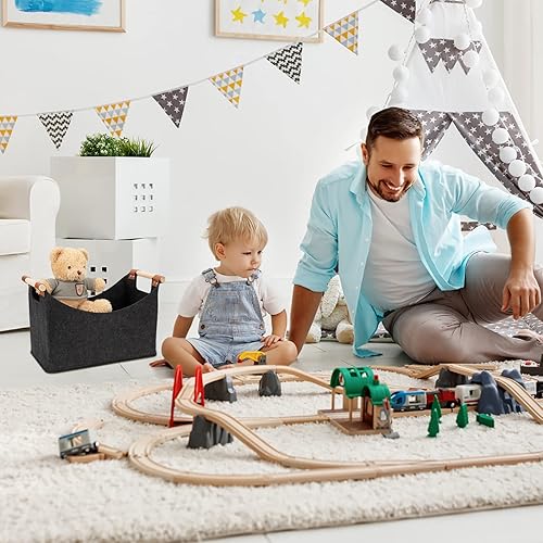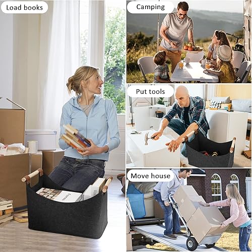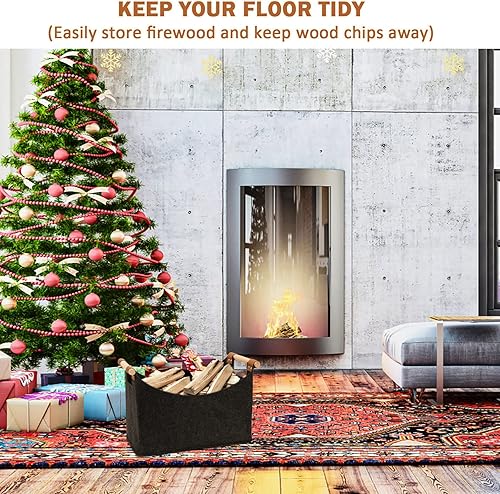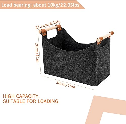 Borsa in Feltro, Borsa per Legna da Ardere Pieghevole Cestino Portaoggetti in Feltro Cesto con Manici per Legna, Giornali, Vestiti, Giocattoli 40 x 22 x 27cm