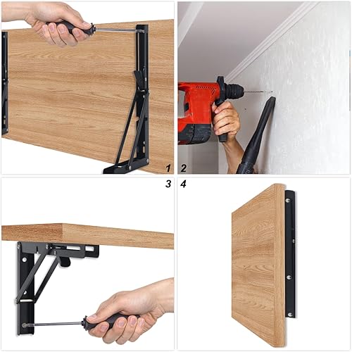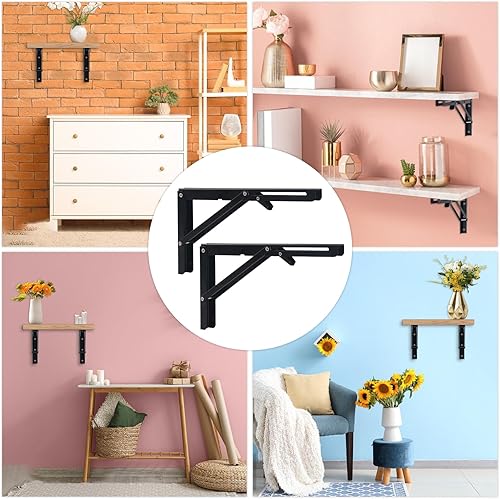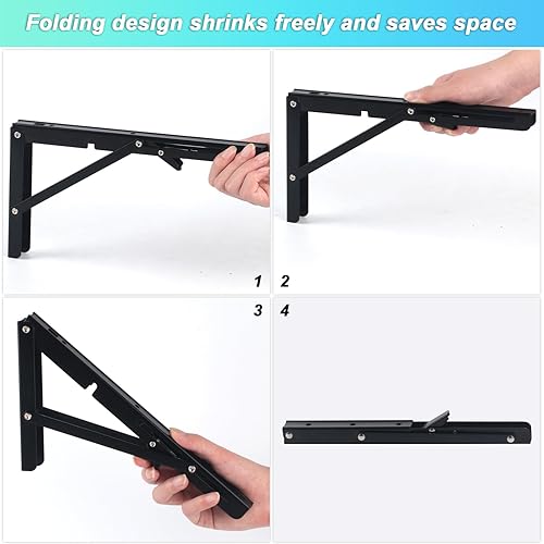 2 x Staffe Pieghevoli, Mensola Pieghevole, Reggimensola, Staffe Per Mensole Pieghevoli Pesant, 300mm Supporti per Mensole, Salvaspazio Supporto Tavolo da Parete Staffe Triangolari per Garage Cucina
