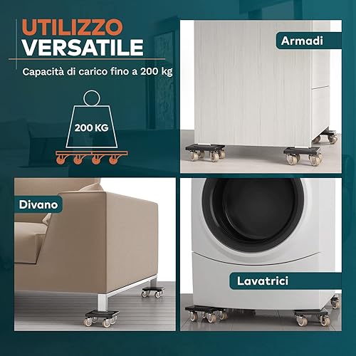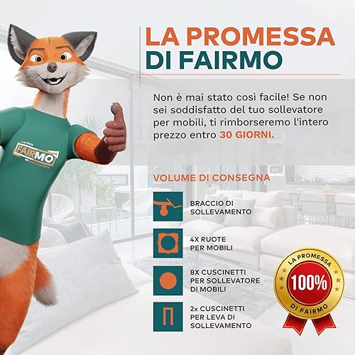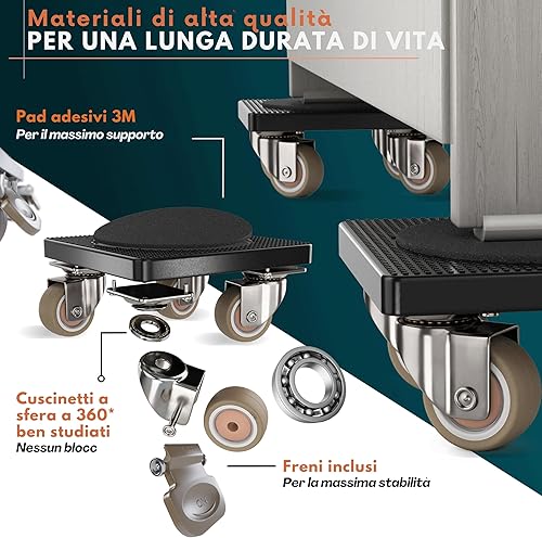 L'innovativo sollevatore mobili di FAIRMO (Con freni) - 4 ruote per mobili e 1 sollevatore mobili (incl. cuscinetti antiscivolo) - Ruote rivestite in TPE - Set con ruote per spostare mobili