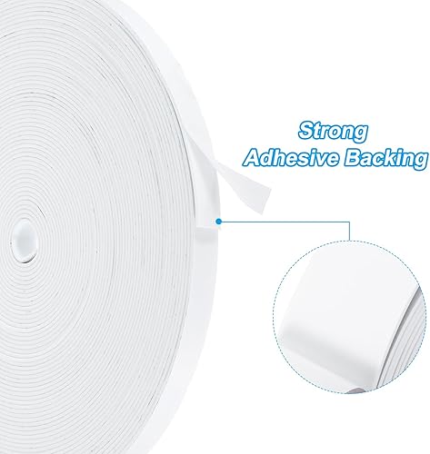 Nastro di Tenuta per Porte in Gomma, 1/2 Pollici x 1/16 Pollici x 66 Piedi Nastro Schiuma Adesiva Autoadesiva ad Alta Densità Isolante per Porte Finestre Aria Condizionata, Bianco