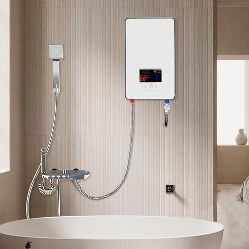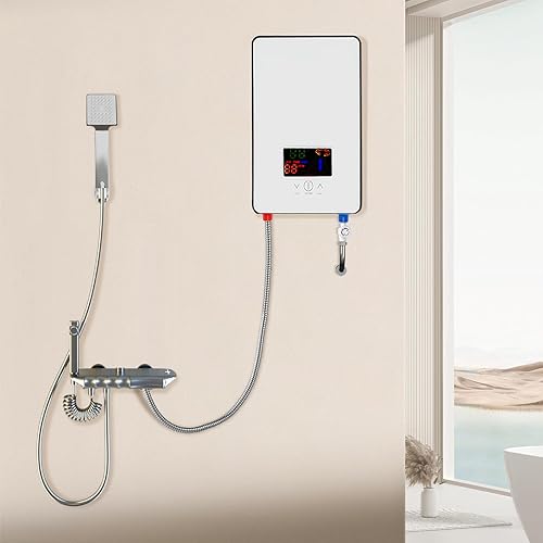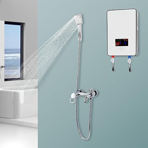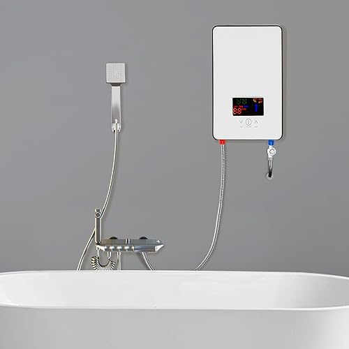 Scaldabagno Elettrico Istantaneo 6500W con Indicatore a Led e Soffione Doccia Temperatura Regolabile per Cucine, Bagni, Ristoranti, Hotel, Dove è Possibile Sospensione Verticale a 90°