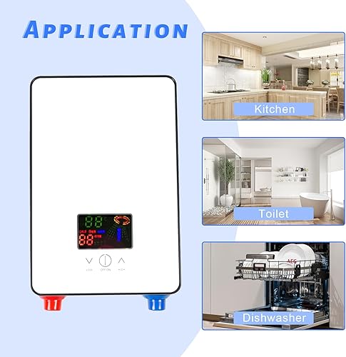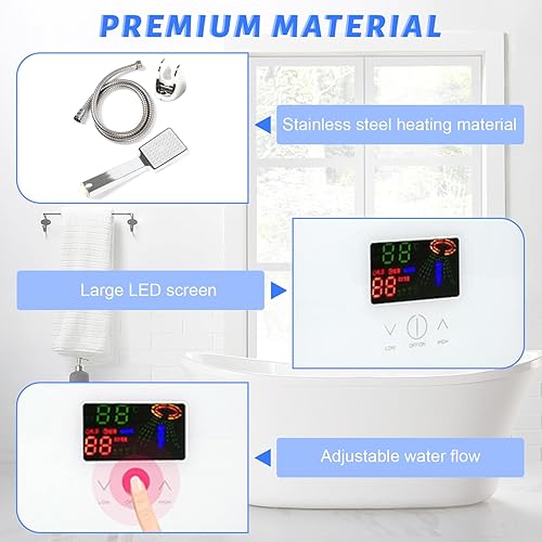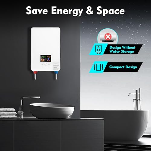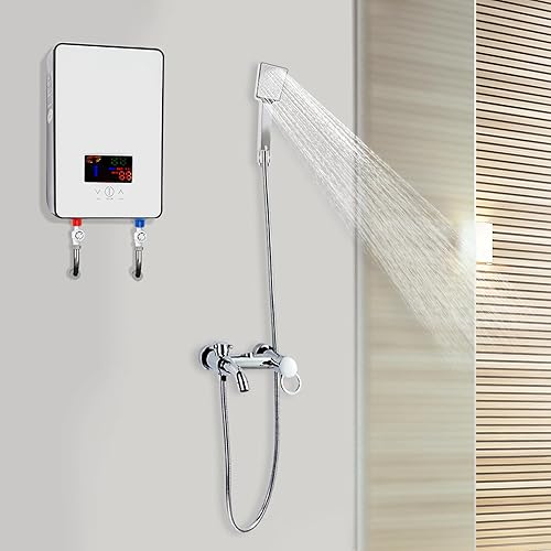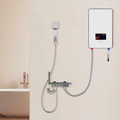Scaldacqua Istantanea,Scaldabagno Istantaneo Elettrico 6500W LED Schermo Controllo a sfioramento 30-55℃ Con Soffione Doccia Tubo Termostato Per Cucina Bagno Toilette etc