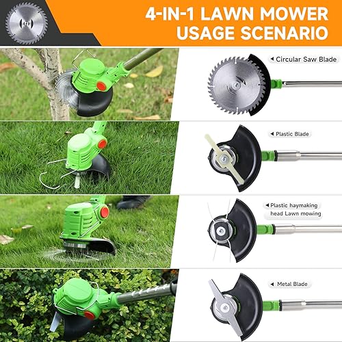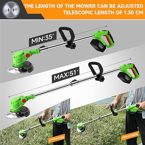 Decespugliatore a Batteria 24V, Tagliabordi a Batteria 3 In 1, con 2 Batterie 2,0 Ah, Maniglia Telescopica, Testa Girevole 90°, per prato e cespuglio (Verde)