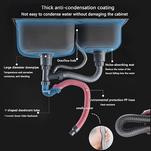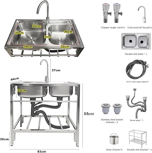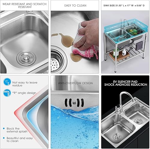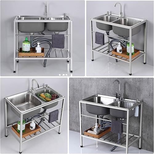 Lavello in acciaio inox con gambe in acciaio indipendenti, lavello multiuso con tavolo da lavoro e rubinetto miscelatore freddo per interni ed esterni, 80 cm
