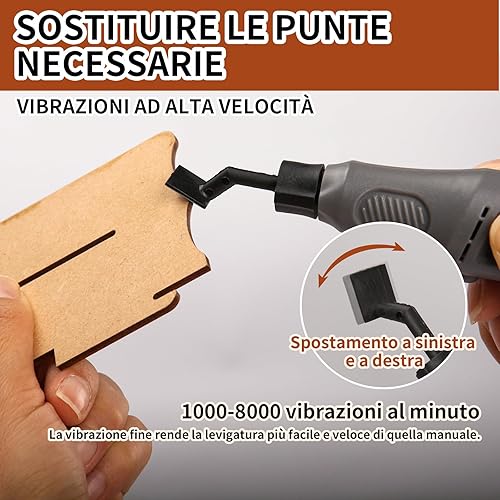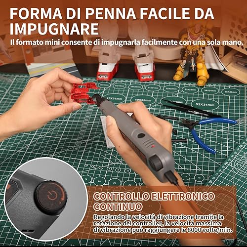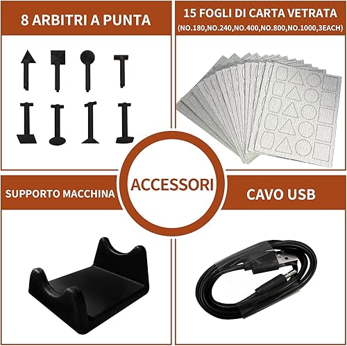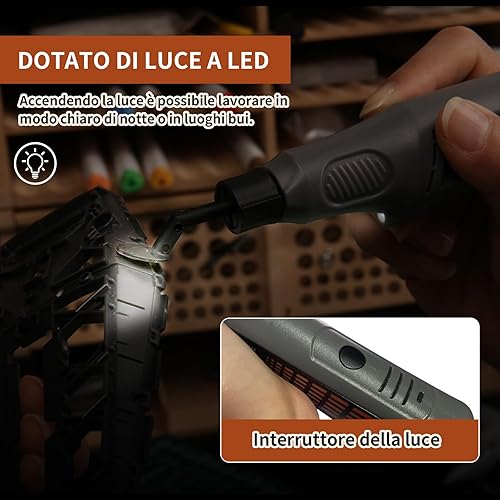 Levigatrice a penna senza fili, velocità variabile e ricarica USB con luce LED, elettroutensile multiuso per levigatura, lucidatura, finitura, bricolage(Grigio)