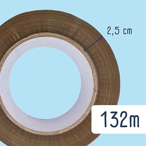 Nastro di imballaggio per sigillare scatole di cartone e pacchetto, nastro adesivo resistente da 45 micron, rotoli di tenuta da 50 mm x 132 m (1 unità, marrone)