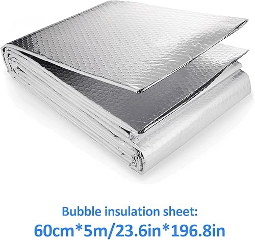 Isolante Termico, 60cm x 5m Pannello Isolante per Termosifoni, Foglio Isolante Doppio Strato Alluminio Bolle, Pannelli Riflettenti per Radiator per Pavimenti, Soffitti, Tetti, Pareti
