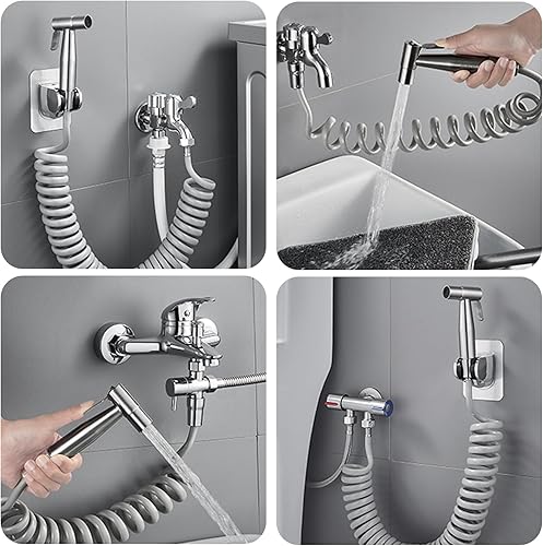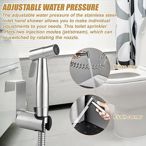 Bidet doccetta a mano in acciaio inox, spruzzatore per WC, bidet, doccetta musulmana, in acciaio inox, per doccia e pannolini in tessuto, kit con erogatore per rubinetto, tubo e gancio o montaggio a