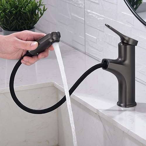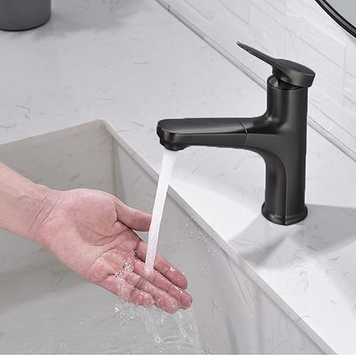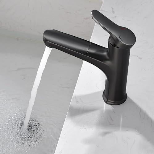 Miscelatore lavabo con doccetta estraibile ottone nero acqua fredda e calda girevole a 360° monoforo Rubinetti bagno flessibile Rubinetto Miscelatore Bagno Monocomando, per primo lavabo