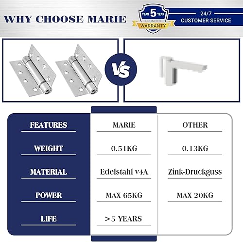 MARIE Chiudiporta a molla, chiudiporta automatico morbido per interni ed esterni, fermaporta robusto, chiudiporta regolabile cerniera per cancelli da giardino, porta in metallo, porta UPVC