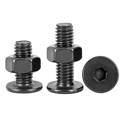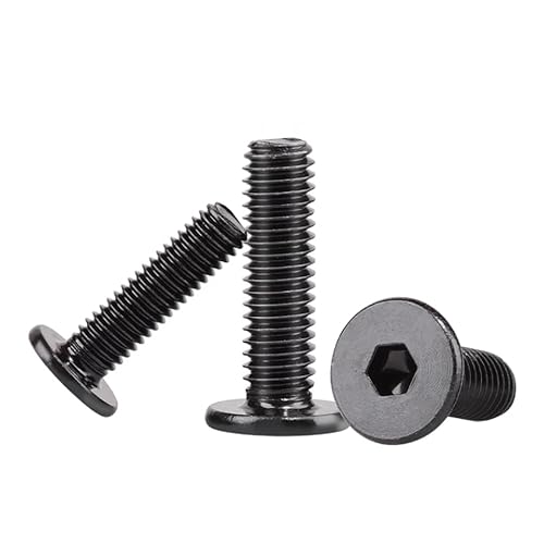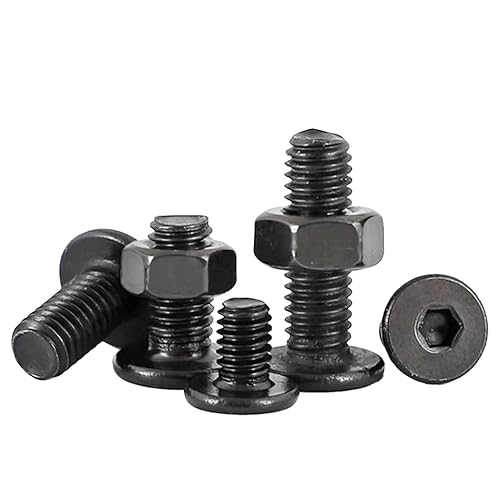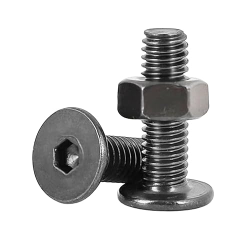 Viti a testa piatta M2 x 12 mm, con esagono incassato e dadi, 50 pezzi, in acciaio inox nero, con esagono incassato a testa grande (M2 x 12 mm)