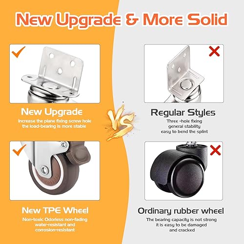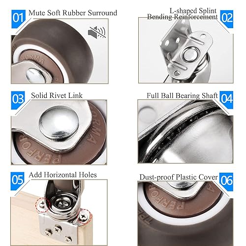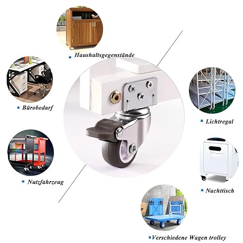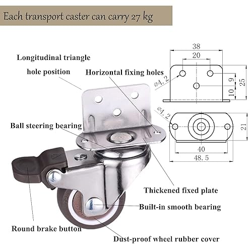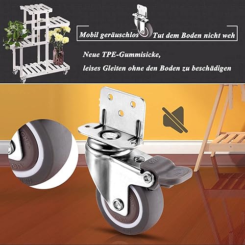 Rotelle per Mobili Pesanti 50MM, 4 Pcs Ruote per Carrello Ruote Girevoli con Freno, Piastra di Montaggio a L, per Supporti Fiori e Culle