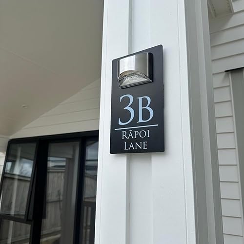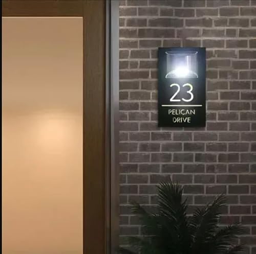 Cartello Solare Personalizzato per Casa ed Esterni - Tagliato al Laser, Rettangolare Con LED Solare, Retroilluminato, Numeri Civici, Indirizzo (15 x 28 cm)