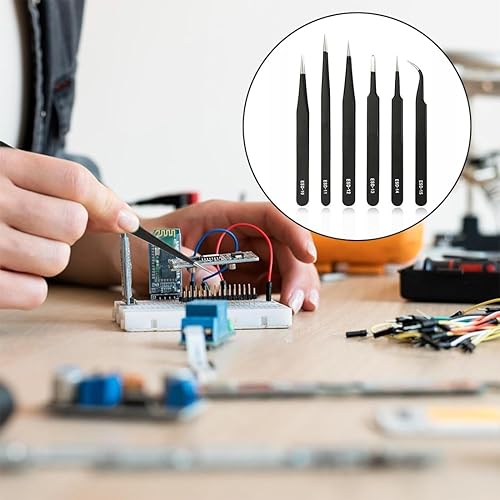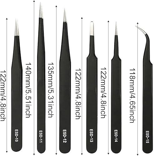 6 Pezzi Pinzette Antistatiche,Pinzette Industriali Precisione in Acciaio Inossidabile ESD,Industriale Acciaio Inox Tweezer,per Strumenti Elettronici, Gioielli, Computer, Lavori Laboratorio e Hobby