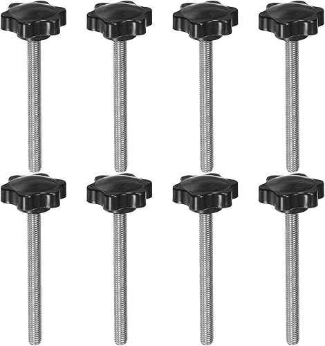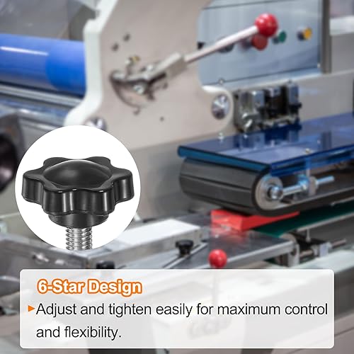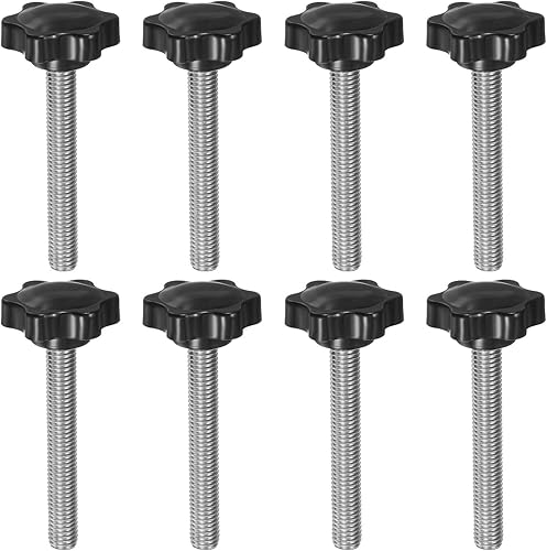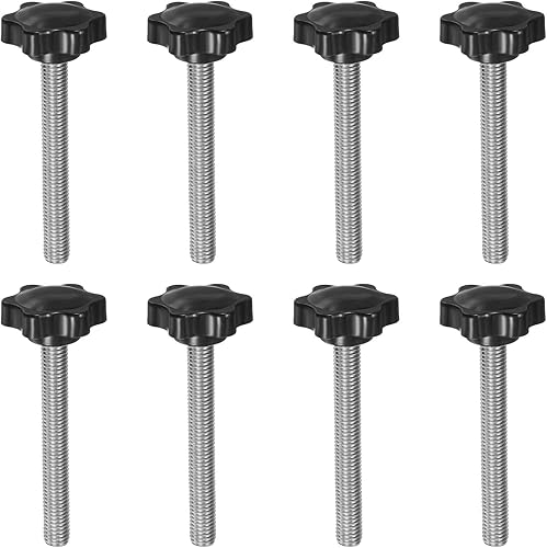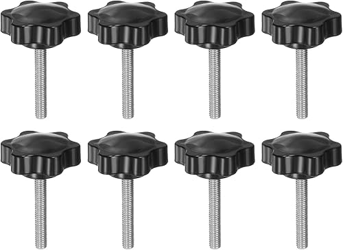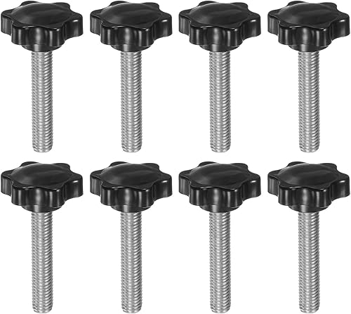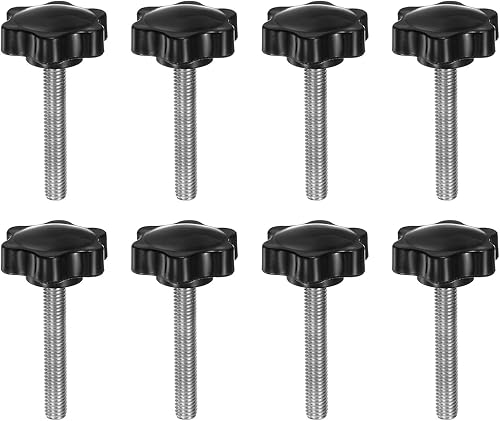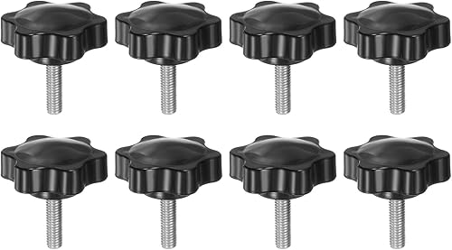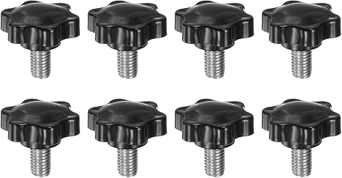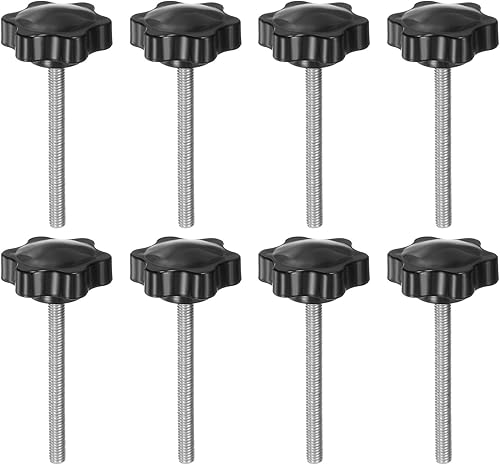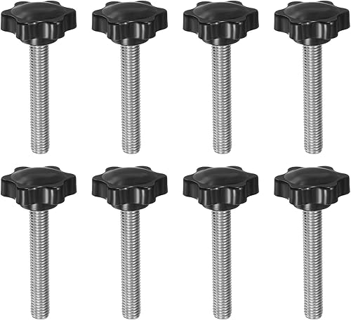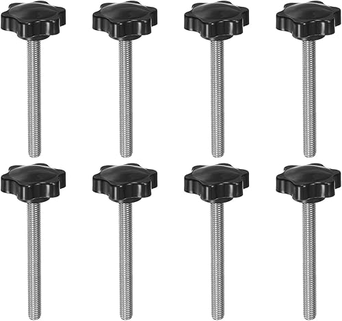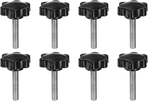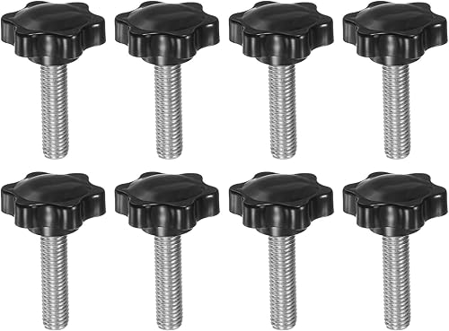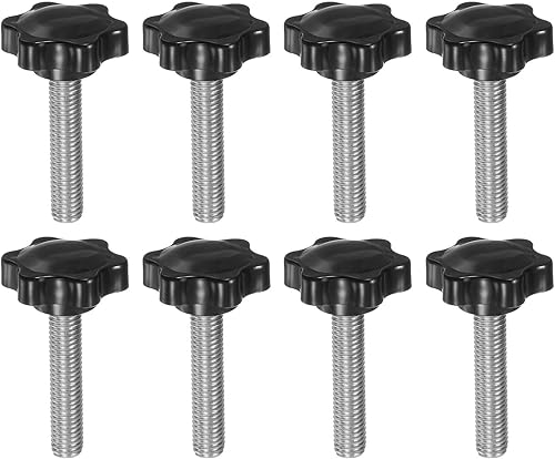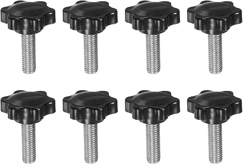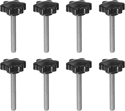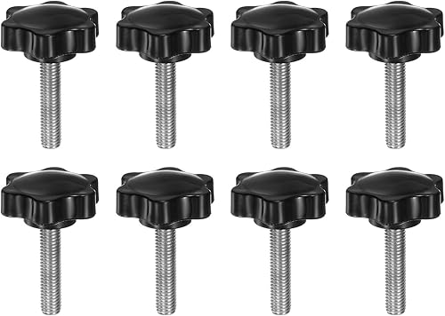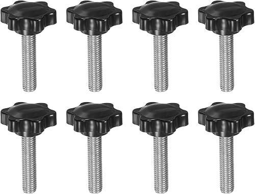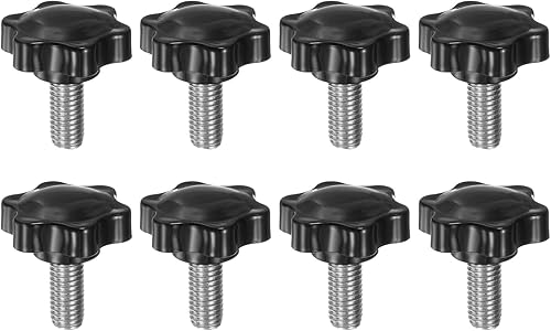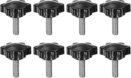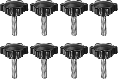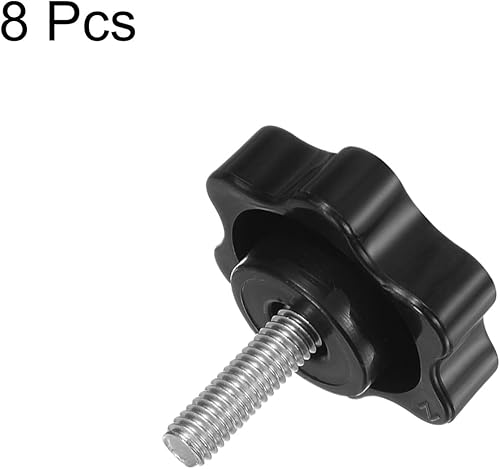 8 Pezzi Pomelli a Stella M6 x 16mm Vite Filettata in Acciaio Inossidabile 304, 38mm Manopola Zigrinata Vite a Testa Zigrinata a 6 Stelle Plastica Impugnatura Manopola, Nero