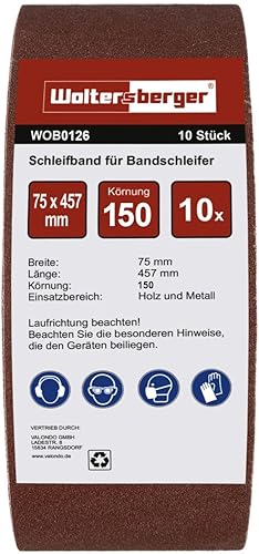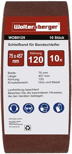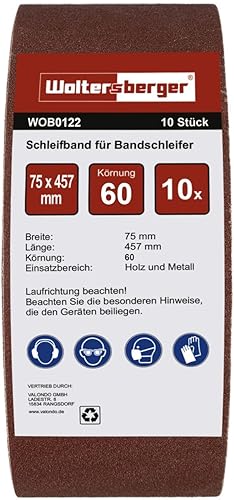10 nastri abrasivi in tessuto, dimensioni 75 x 457 mm, grana P80, carta vetrata, per levigatrice a nastro/carta vetrata