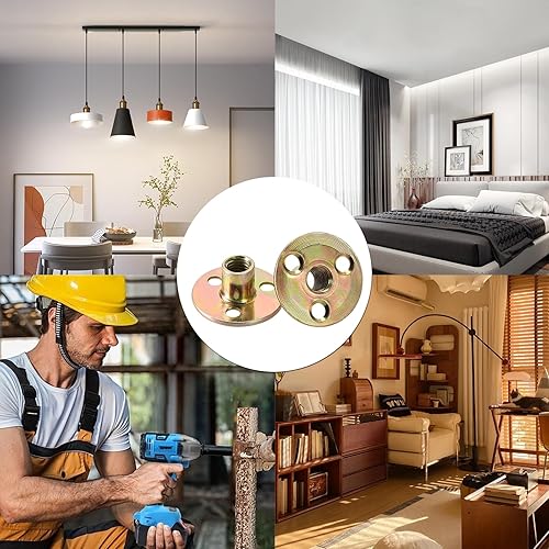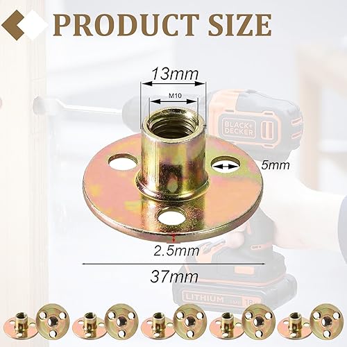 10 Pezzi Foro Tee Dado, M10*37 * 2.5, M10 Ferro Zincato T Dado, Dadi a T 3 Fori, Dadi Flangiati, Base Rotonda a Vite T-Nut per Mobili