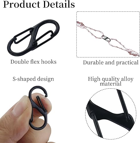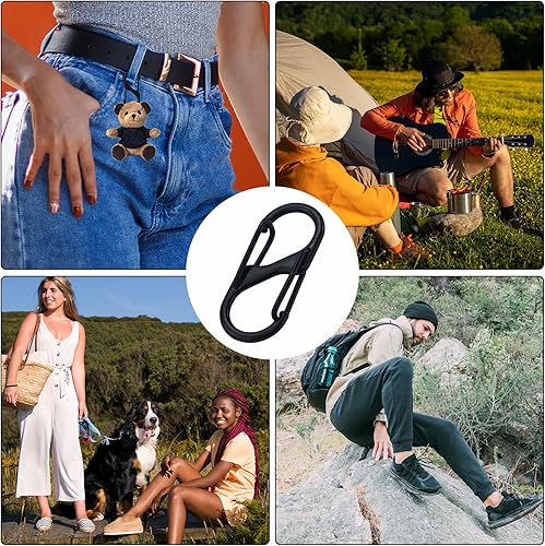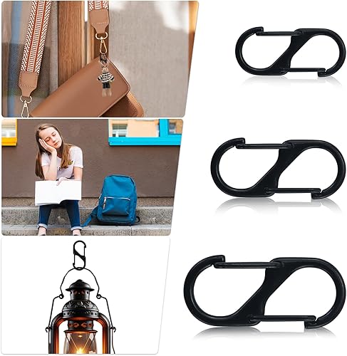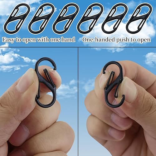 Formiger - 12 moschettoni mini metallo doppio 8 formiger, 2 fori, 30 mm, piccolo per esterni, campeggio, casa, escursionismo, nero