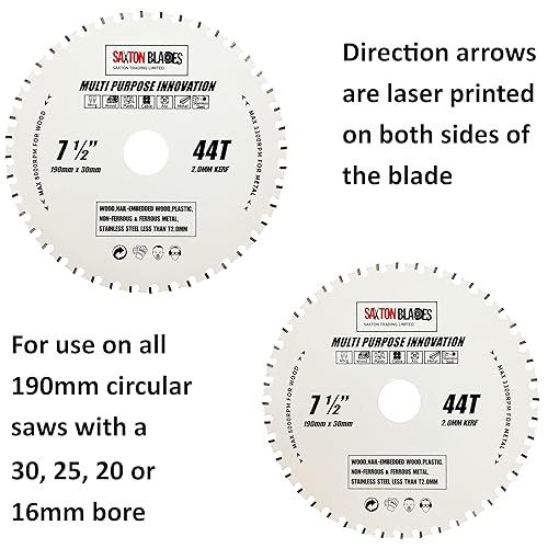 Saxton TCT TCT19044TMPT - Lama per sega circolare multiuso, 190 mm x 44 denti, per legno e metallo, compatibile con Bosch, Dewalt, Ryobi, Makita, ecc