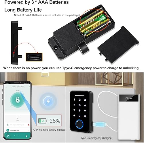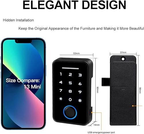 Tuya - Serratura intelligente nascosta per armadietti, serratura portatile con password, kit di sicurezza elettronico per impronte digitali con scheda RFID, per mobili, liquori,