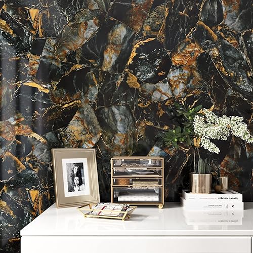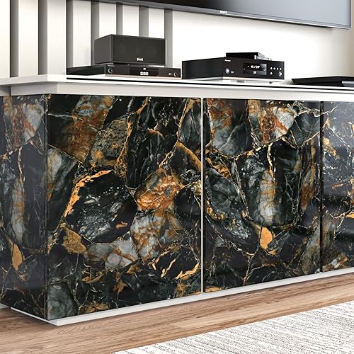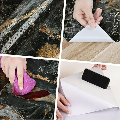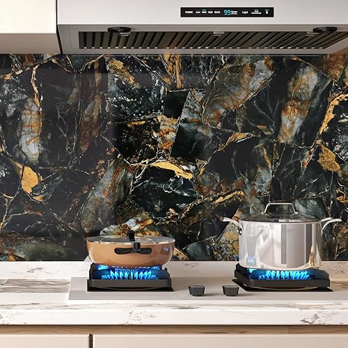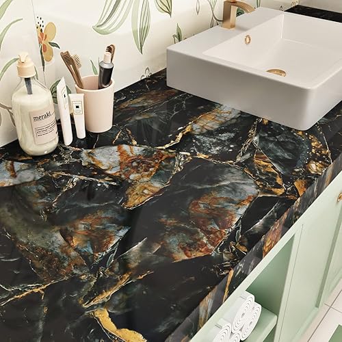 Pellicola Adesiva per Mobili Cucina Nera Carta Da Parati Adesiva in Marmo Oro Nero Rivestimento Top Cucina Bagno Decorazione Parete Marmo Carta Adesiva Per Mobili Armadio 60cm x 300cm