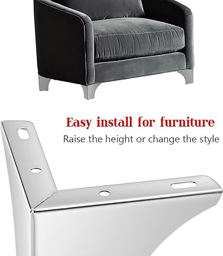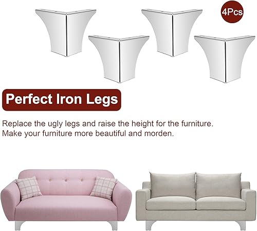 4 piedini per mobili da 10 cm, in acciaio, per le gambe delle sedie, del tavolo, armadio, TV, cassetti, divano, con viti, gambe per mobili, montaggio semplice, a triangolo, colore argento