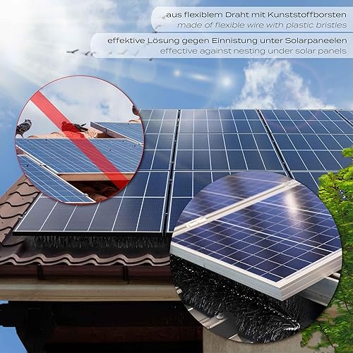 Wiltec Spazzola per grondaie e Barriera Anti piccioni 20 scovoli 24 m Ø 8cm per Pannelli fotovoltaici