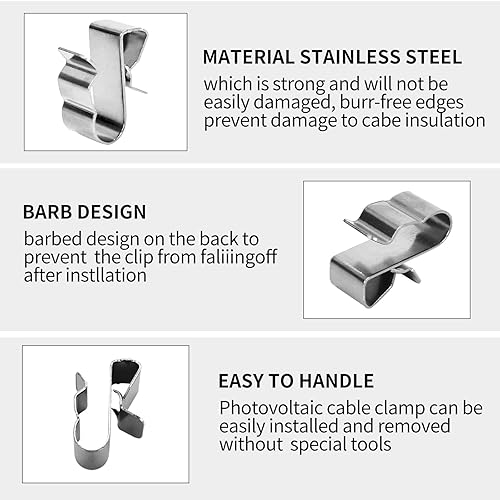 50 Pezzi Clip per Cavi Fotovoltaici, Clip per Fissaggio Cavi a Pannelli Fotovoltaici, in Acciaio Inossidabile, Clip per Cavi per Rimorchio, per Pannello Solare, Fissaggio Modulo Solare