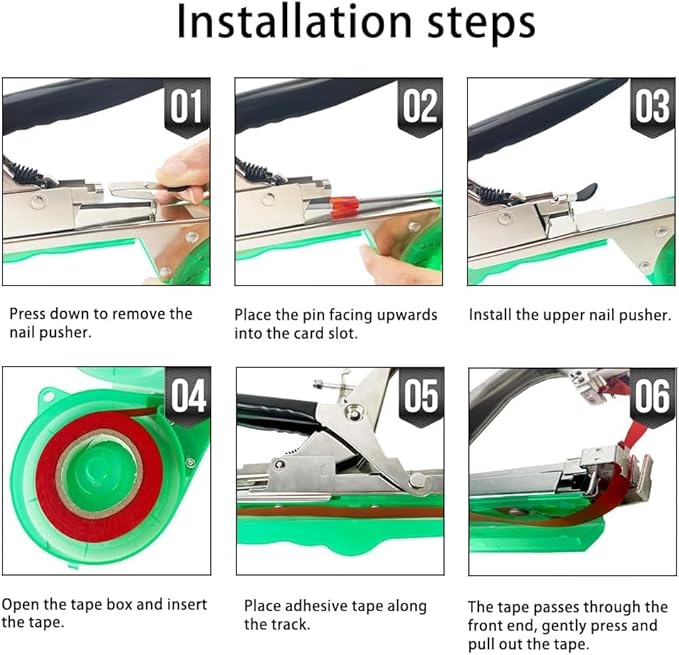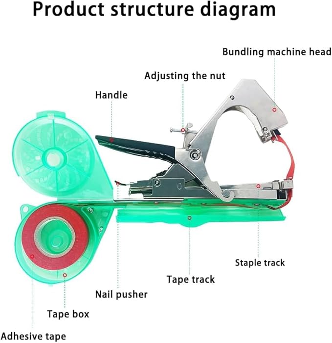 Legatrice per piante, in rattan, strumento per legare le piante, nastro da giardino, con 11 rotoli di nastro e 1 scatola di graffette (verde)
