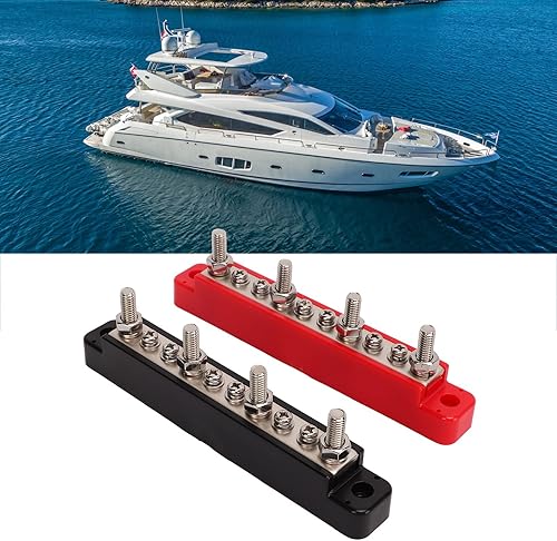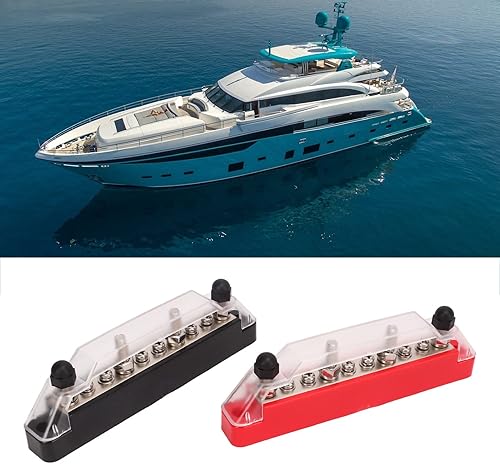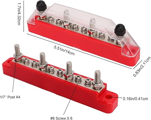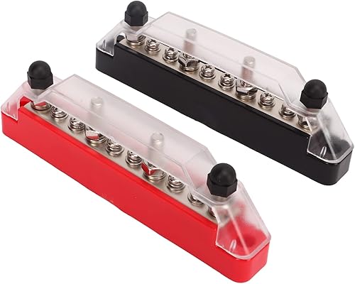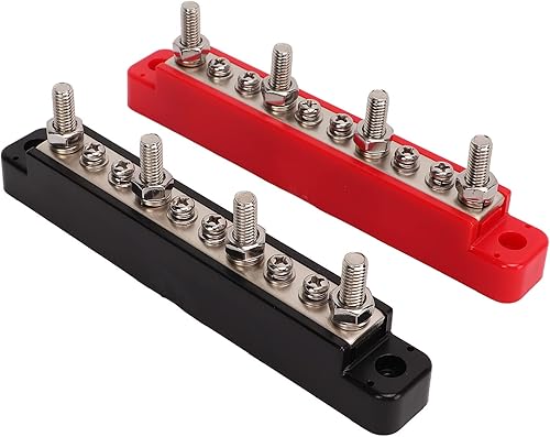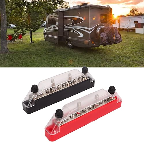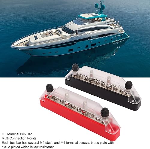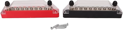 Blocco Distribuzione Alimentazione Sbarra Bus con Coperchio 150A Sbarra Bus Marittima Morsettiera Batteria Morsettiera M6 Vite Prigioniera M4 10 Morsetti Sbarra Bus per Auto,(2 borchie M6, 8 viti M4)