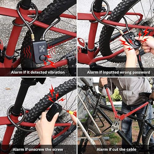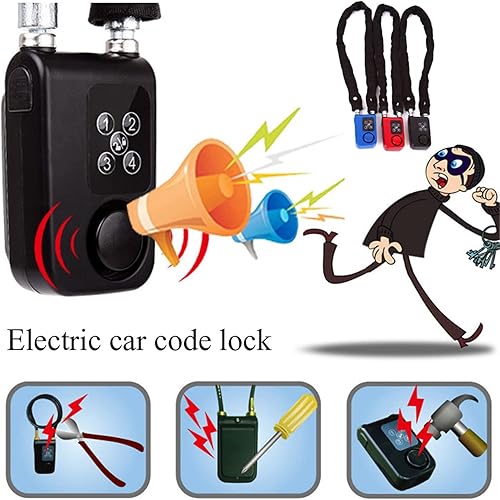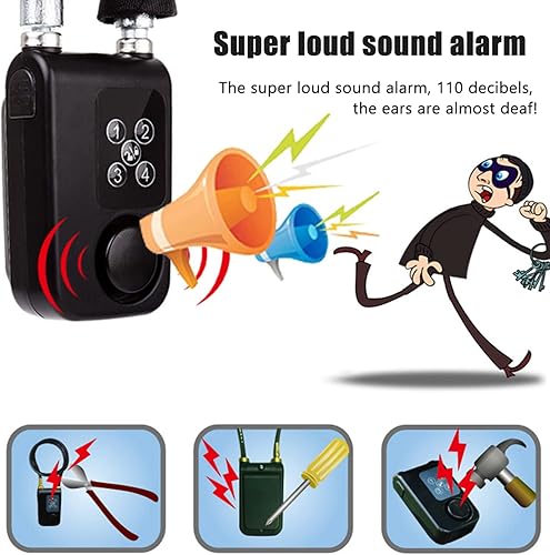 Lucchetto per bici elettrica con allarme sonoro, antifurto per scooter, cavo in acciaio inossidabile, resistente al taglio, per porta del cancello della moto, catena antifurto per bicicletta, catena