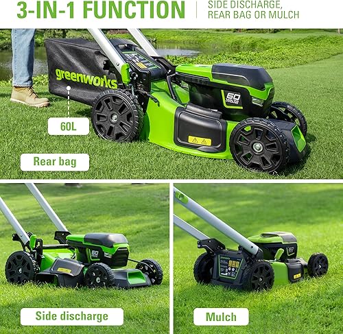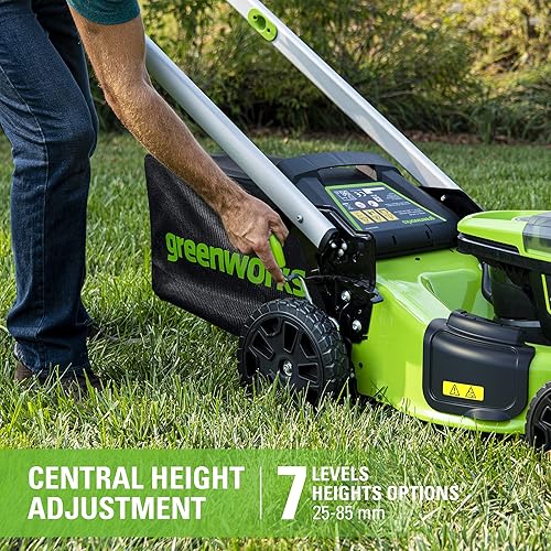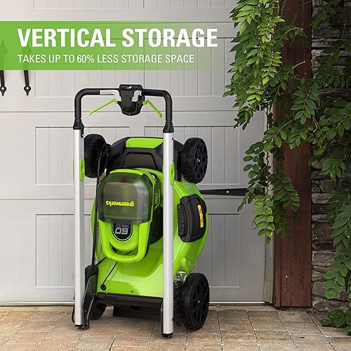 Greenworks Pro 60V 51 cm Brushless Nascower senza filo, altezza di taglio 25-85 mm, manico pieghevole, deposito verticale, con sacchetto da 60 litri (con batteria e caricabatterie da 4ah)
