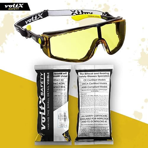 voltX 'QUAD' 4 in 1 - Occhiali di sicurezza - GIALLO - con inserto in gommapiuma e fascia rimovibile - certificazione CE EN166F