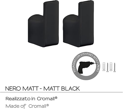 Gedy Nero, G-Kuala Lumpur, 2 Appendi Singoli, Colore, Porta Abiti Realizzati in Cromall, Ottone e Vetro, Garanzia 2 Anni, Misure 5,3 x 2 x 3,3 CM e Peso 0,196 kg, Design R&S, Unica